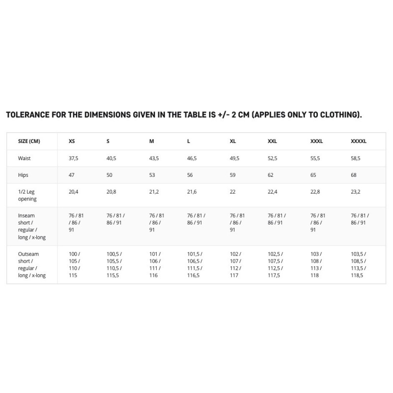 Elutähtsates piirkondades (talje, jalgevahe ja põlvede tagaosa) kasutasime Versastrechi materjalist sisetükke. See kuivab kiiresti ja on kõrge hingavusega. Põlvepiirkond on tugevdatud 500D Cordura kangaga, millel on pilud kaitsvate vahetükkide jaoks. Tänu täiendavatele pingutusnööridele, mis asuvad põlve all ja sääre allosas, saab pükse hõlpsasti sääre järgi reguleerida.