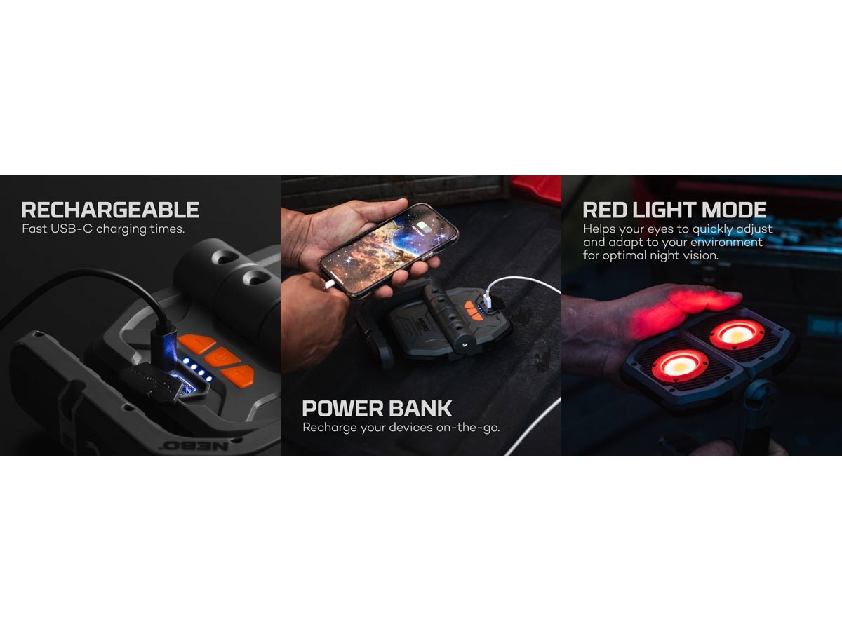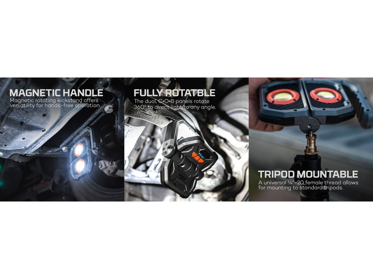 OMNI 3K on igasuunaline töövalgusti, millel on võimas 3000-luumenine kahekordne COB-väljund ja punane ohutulede funktsioon. Sellel on reguleeritavad magnetilised käepidemed mugavaks kandmiseks, magnetiline kinnitus ja vastupidav alus käed-vabad valguse tagamiseks. Iga COB-paneel ja magnetilised käepidemed pöörlevad, et anda valgust kõikjale, kus seda vajate. Heleduse regulaatorid annavad teile just õige valgushulga. Täielikult laetav OMNI 2K on varustatud ka akupangaga USB-toitega seadmete laadimiseks.
